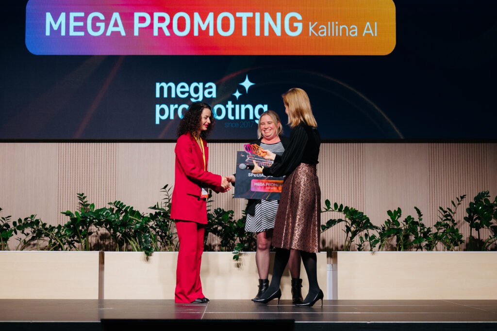 Premiul „Special Jury Prize”, acordat pentru viziune, originalitate și potențial transformator, a fost obținut de Mega Promoting – Kallina.ai. Compania digitală, axată pe tehnologia vocală, transformă conversațiile cu clienții în acțiuni concrete – rezervări, vânzări, asistență și documente – 24/7, prin telefon și alte canale, în peste 40 de limbi.