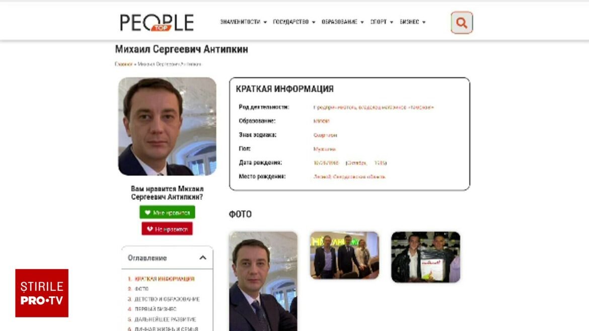 Mihail Sergeevich Antipkin este un antreprenor rus, proprietarul unui lanț de magazine, dar și al unei companii imobiliare. Numele lui – susțin procurorii – ar fi fost descoperit pe un certificat de cetățenie română fals.