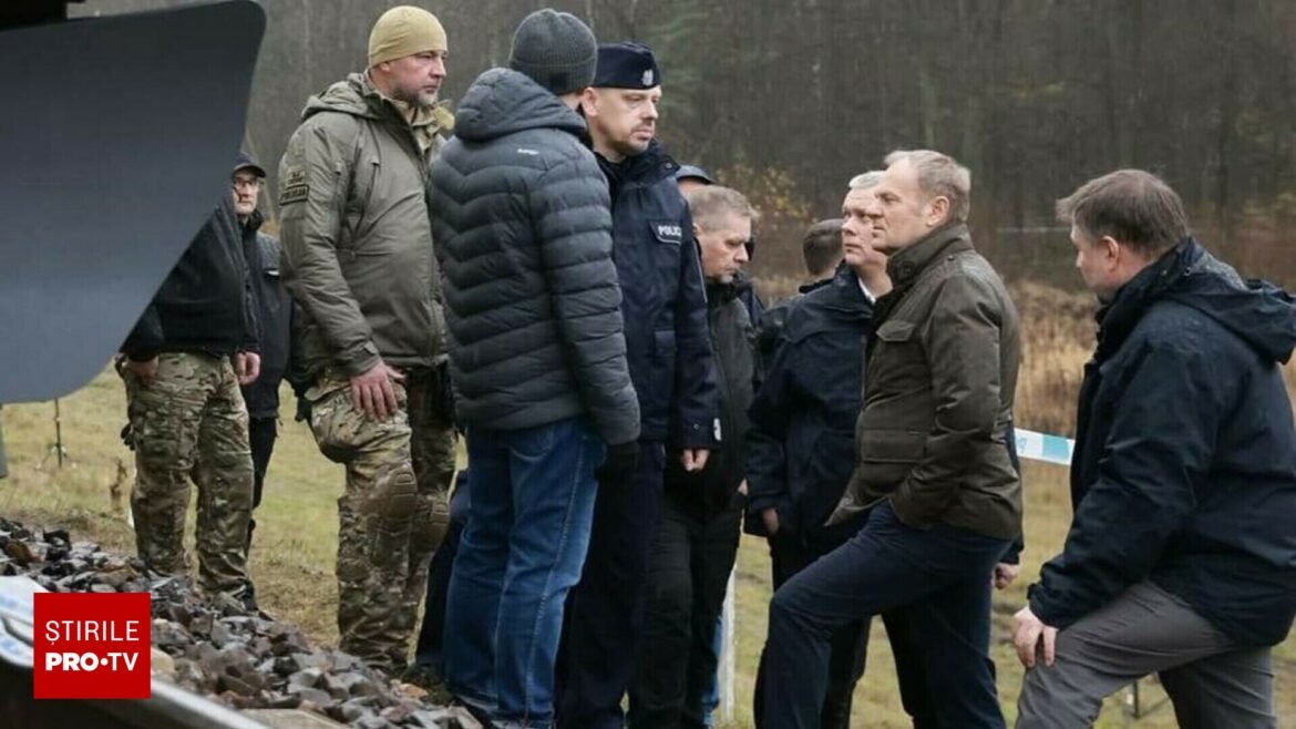 „Explozia unui dispozitiv exploziv a distrus calea ferată”, a scris Donald Tusk pe platforma X.